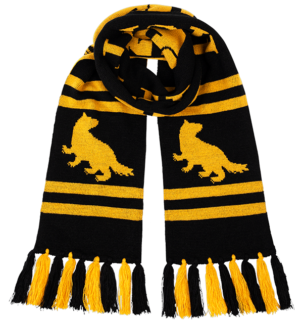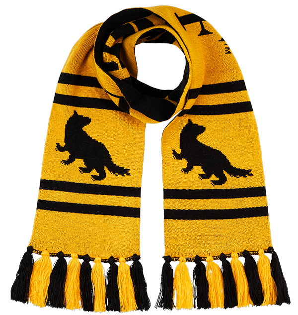 The word ‘Hufflepuff’ is embroidered along the length of the scarf and is complete with the iconic symbol of the Hufflepuff house, a badger. The scarf features tassels at each end and is perfect for aspiring witches and wizards to add to any outfit and their accessories collection.