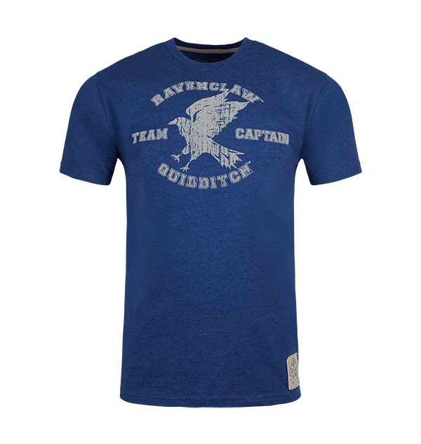 Join theย Ravenclawย Quidditch team with thisย Ravenclawย Quidditch Team Captain t-shirt. The t-shirt is aย blueย colour, the traditional colour of the Ravenclawย house, and features a raised flock print design across the chest inย greyย of the Ravenclaw house crest, anย eagle.
