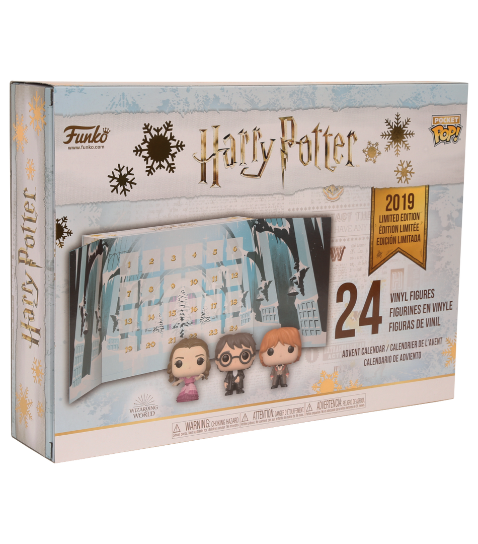 This Harry Potter Advent Calendar boxed set includes 24 collectible vinyl Harry Potter Pocket Pop! figurines. Each Pocket Pop! size vinyl figure measures approximately 1-2 inches in height.