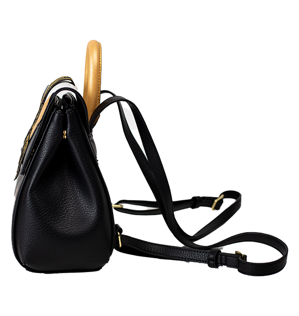 The backpack goes on to feature complimentary gold hardware in a magnetic snap closure for the main flap as well as on the sides to allow for expansion. The deluxe lined interior features two compartments, one in the front and the other with a zip closure in back. Adjustable shoulder straps allow for a secure and comfortable fit for any aspiring Hufflepuff student!