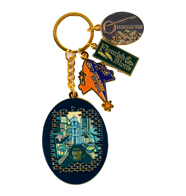 Nothing builds excitement for new Hogwarts students like a first visit to Diagon Alley for school supplies! Commemorate Harry’s shopping trip to this magical mecca with this memorable enamel keepsake keyring.