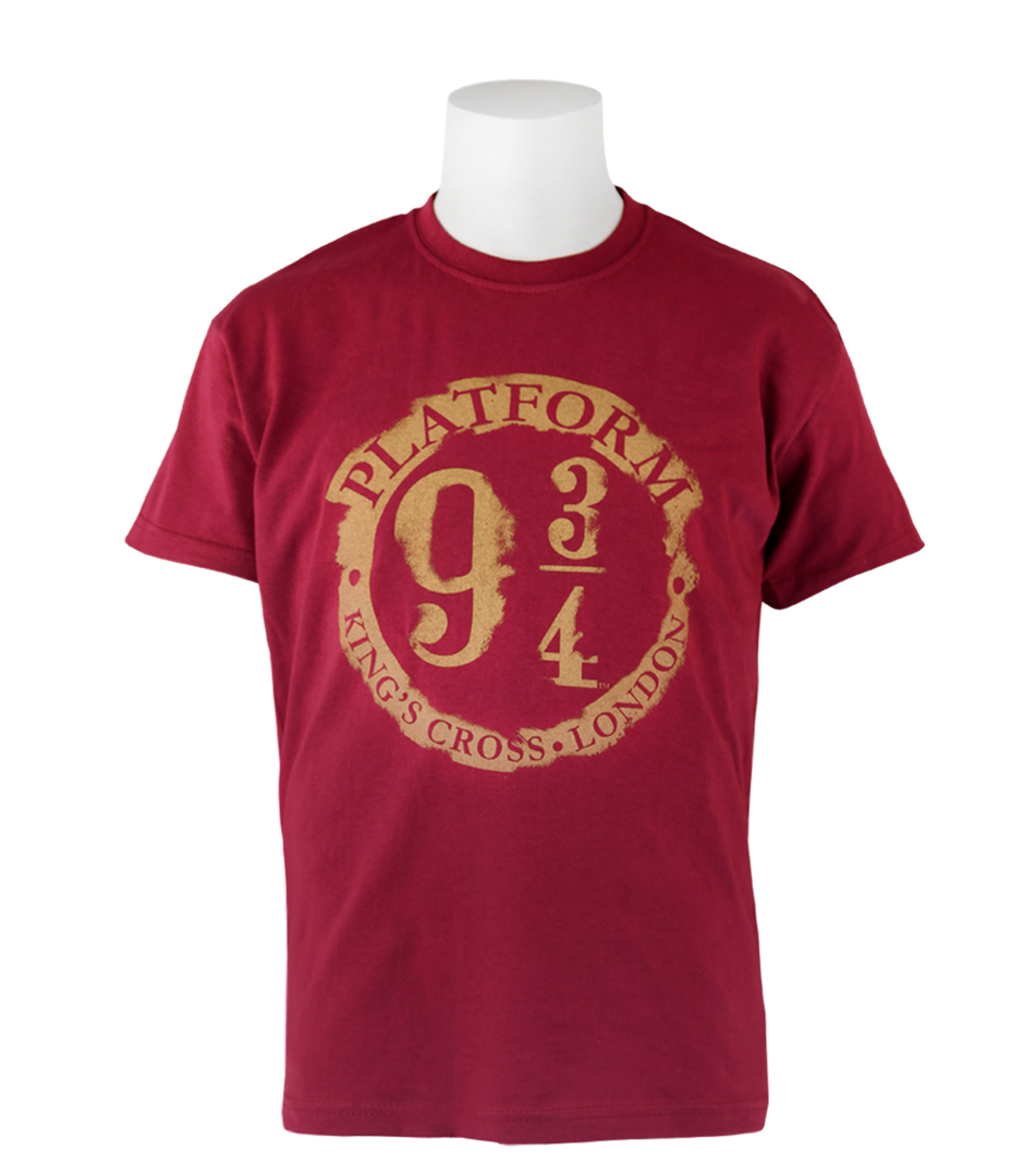 The burgundy t-shirt features a bespoke design of the iconic Platform 9 ¾ logo in a unique gold distressed print, featured on both the front and the sleeve. The cosy kids unisex t-shirt is made from 100% super-soft cotton and is machine washable. The perfect addition to add to any wizard, witch, or muggle’s Harry Potter collection.