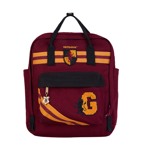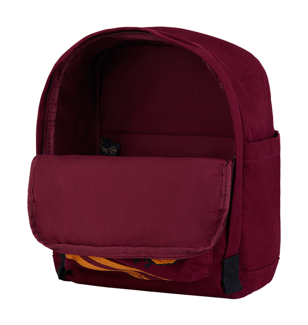 Celebrate your Hogwarts house pride with this unique Gryffindor backpack. Made from 100% cotton, the backpack features a burgundy design with yellow vertical and diagonal stripes across the front. The iconic Gryffindor crest is embroidered into the centre of the backpack. The bag has black handles as well as black straps which can be adjusted for a suitable and comfortable fit. The Gryffindor backpack is complete with various compartments and pockets, perfect to keep safe or hide any magical trinkets when you’re on the go.