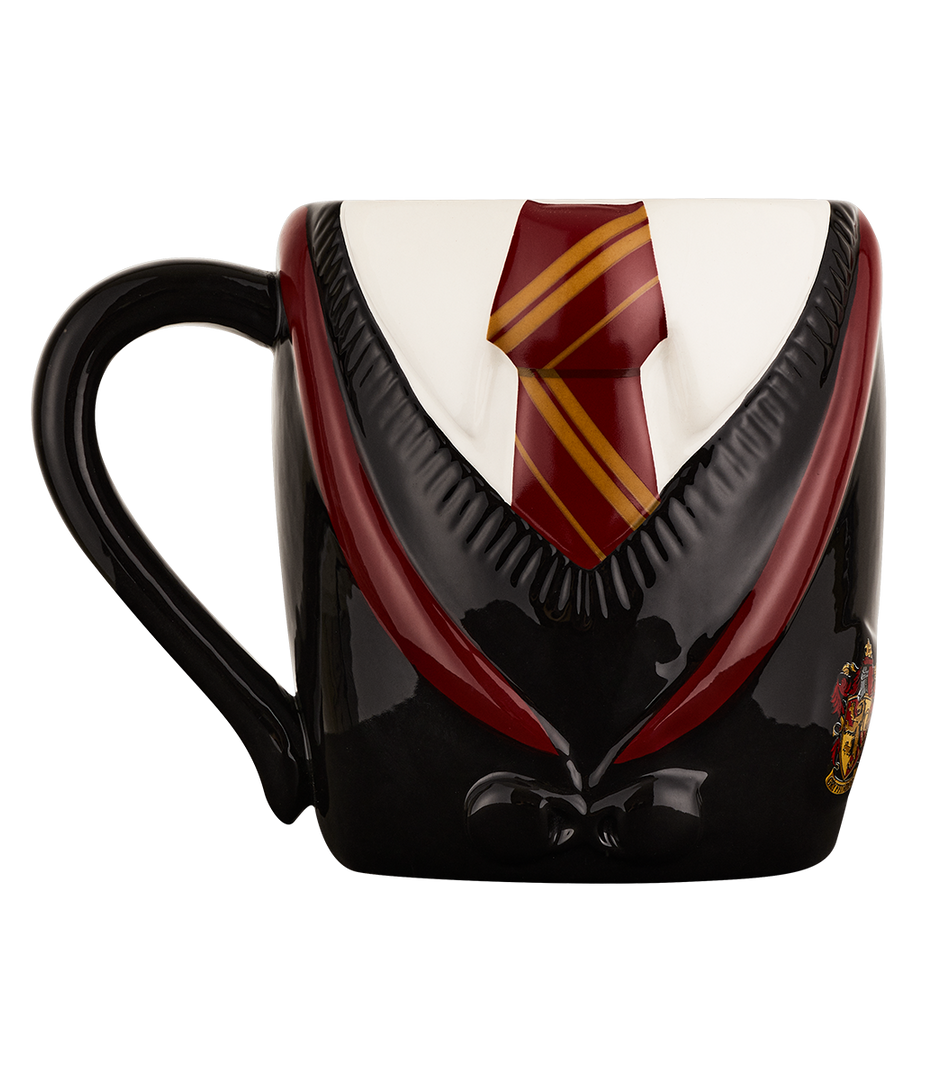 Pour yourself a mugful of your favourite drink in this Gryffindor mug. The mug is made from ceramic and features a house robe, with a scarlet red hood on the reverse, and house tie in red and yellow, the traditional colours of the Gryffindor house.