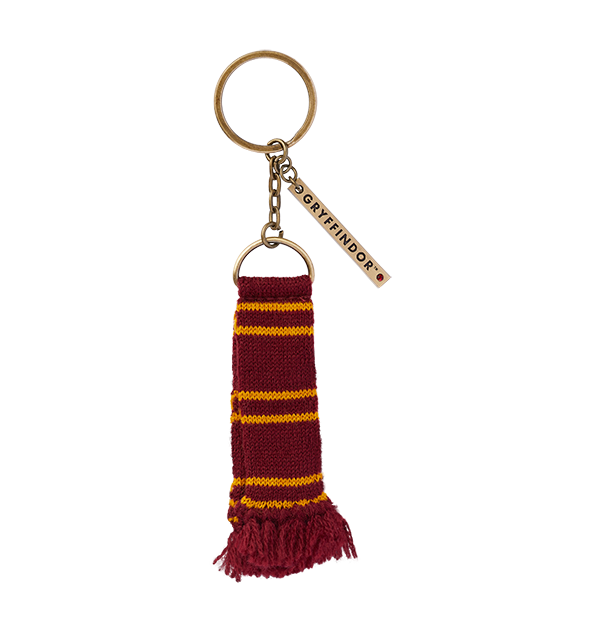Show your loyalty and celebrate house pride to your Hogwarts house with this bespoke miniature replica Gryffindor Scarf Keyring. The keyring features a soft, acrylic knit scarf in traditional house colours of burgundy and yellow.
