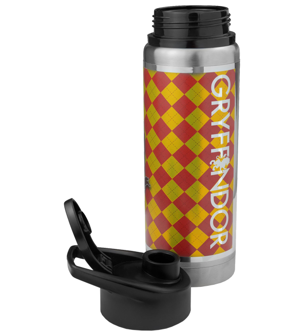 Celebrate your house pride and add this bespoke Gryffindor flask to your homeware collection. The 20oz flask is insulated to keep drinks at a consistent temperature; both for hot and cold. The black plastic lid is a screw-top and has a pop-up lid to drink from, perfect for taking with you on-the-go.