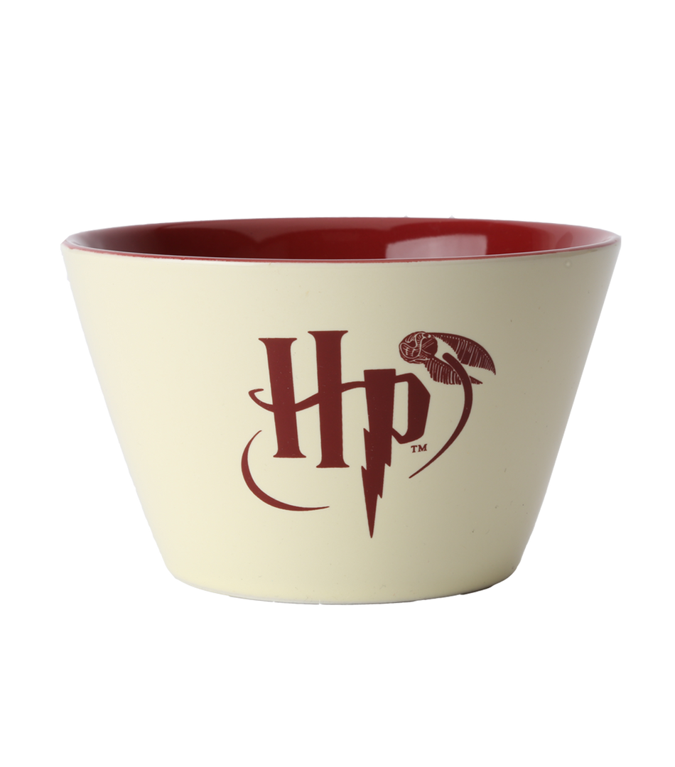 This Harry Potter bowl features the classic Hogwarts school crest on one side and Harry Potter’s initials surrounded by the Golden Snitch on the other. Made of ceramic.