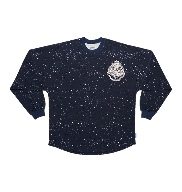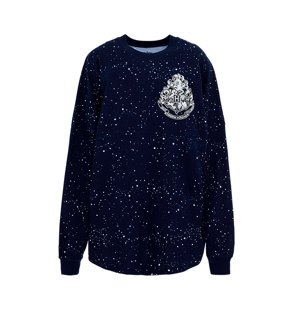Show your support and celebrate Hogwarts with this Hogwarts Starry Night Spirit Jersey®. The shirt features an all-over star design printed on the material and is complete with a Hogwarts Crest in puff glitter print on the front chest. The long-sleeved shirt features a Hogwarts Crest in a white design on the front chest, with the Hogwarts school motto ‘Draco dormiens nunquam titillandus’ presented underneath, which translates to ‘Never tickle a sleeping dragon’.