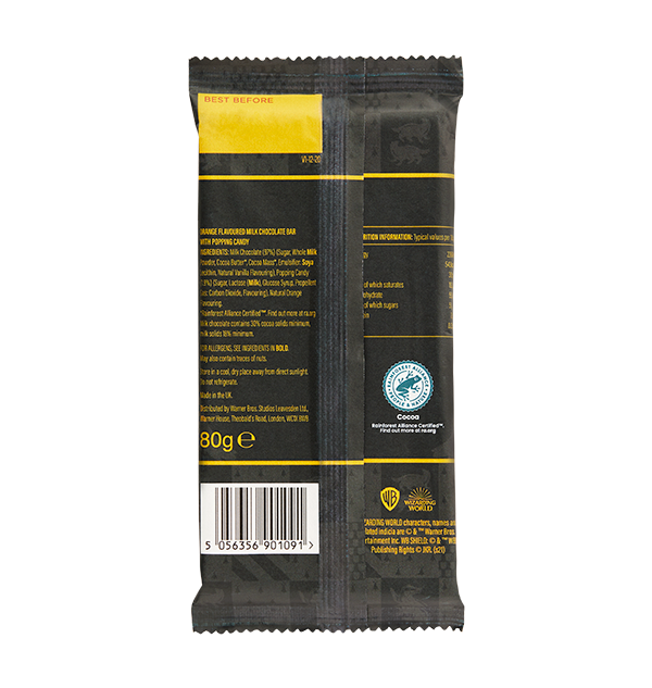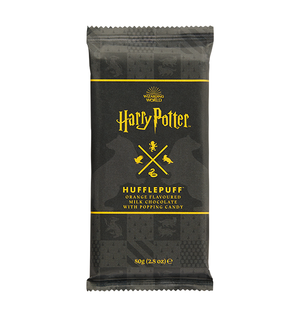 The chocolate bar comes in bespoke packaging which features a black and yellow design, the traditional colours of the Hufflepuff house. Take home your very own chocolate bar, straight from the Hogwarts Express Sweet Trolley.
