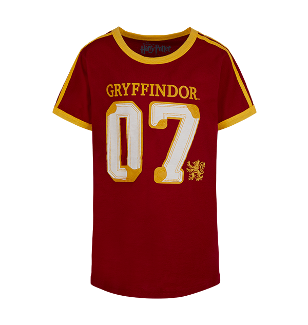 Celebrate your house pride with this athletic Kids Harry Potter Seeker Jersey. The t-shirt has been designed with scarlet red and yellow colouring, representing the traditional colours of the Gryffindor house. The t-shirt is complete with the number ‘07’ printed on the front in gold applique, and the name ‘Potter’ on the reverse.