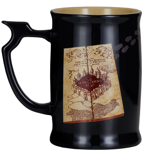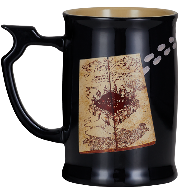 The Marauder’s Map is a magical map that uncovers Hogwarts School of Witchcraft and Wizardry showing every classroom, every hallway, including all the secret passages that are hidden as well as the location of every person in the Hogwarts grounds. This Marauder’s Map heat change mug is not microwave or dishwasher safe.