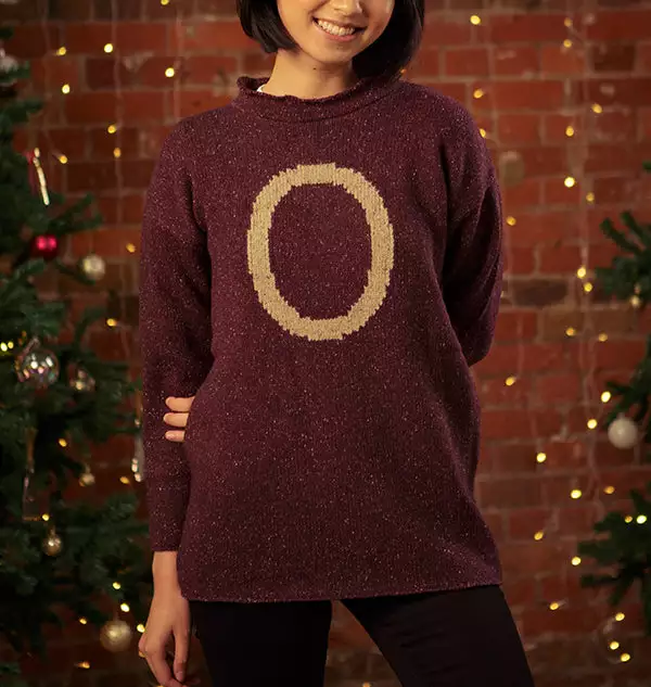 Add a touch of magic to your Christmas this year and add your very own initial to the knitted jumper that Mrs. Weasley gives to Harry during Harry Potter and the Philosopher’s Stone. This super cosy unisex knit, made from a soft lambโs wool blend, features the letter ‘O’ on the front, much like Harry’s ‘H’ jumper as seen on screen in the Harry Potter film series. The jumper makes the perfect wardrobe addition to keep you warm through the cold winter months, for fancy dress, or as a collectible gift for a loved one.