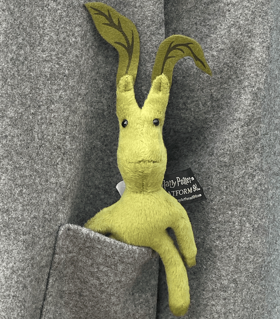 Newt Scamander’s magical creature Pickett will be sure to keep all your trinkets and secrets safe whilst hiding in your pocket. The hand-sized magical beast is enveloped in light green fur and has fluffy dark green antennae made of leaves from Pickett’s natural habitat.