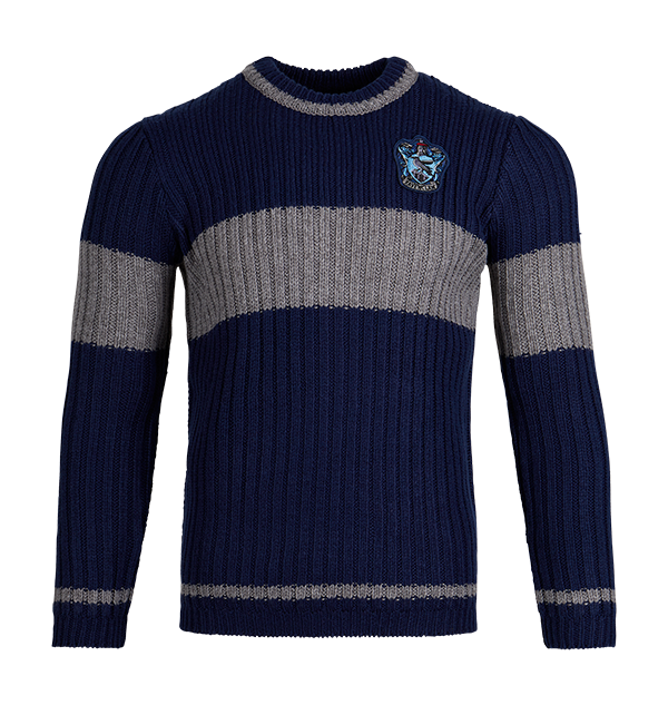 Cheer on your favourite Hogwarts house Quidditch team with this Ravenclaw Quidditch jumper. Featuring an embroidered Ravenclaw house crest patch on the left chest in the blue and silver colours of the house, this Quidditch sweater is a faithful celebration of the ones seen in the Harry Potter film series. This Ravenclaw Quidditch sweater is made from 100% super soft acrylic material and is machine washable.