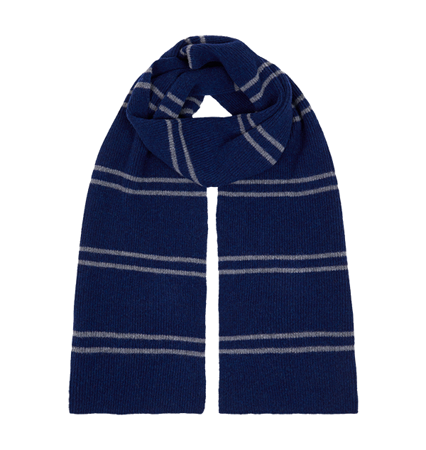 Purchase your very own piece of Harry Potter movie memorabilia and bring the magic of Hogwarts home with you with this Ravenclaw scarf. Made by Lochaven of Scotland who supplied the original cast with their school outfits, this navy and silver Ravenclaw scarf is a faithful reproduction of the ones worn within the film series.