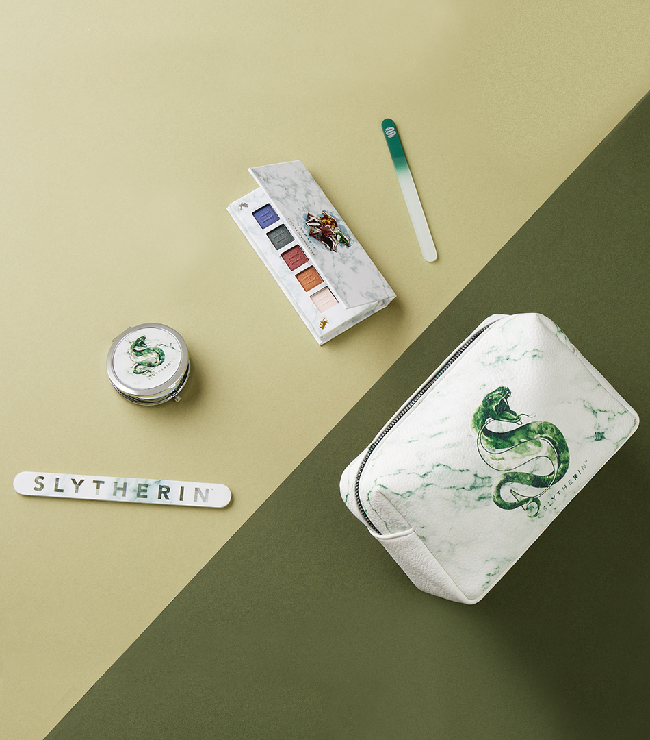 Celebrate your Slytherin house pride with this show-stopping makeup range dedicated to your Hogwarts house. The collection includes a stunning compact mirror, a two-pack nail file kit made up of one emery board nail file and one luxurious glass file and a bespoke makeup bag inspired by the Slytherin house.