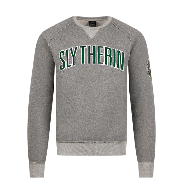 Add some magic to your wardrobe with this unisex Slytherin sweatshirt. The light grey sweatshirt features emerald green and white design of the word ‘Slytherin’ across the centre of the chest.